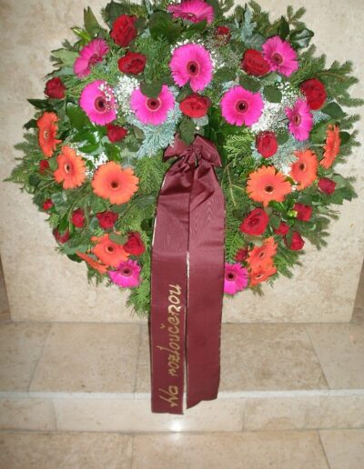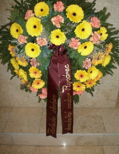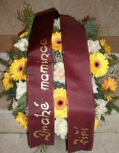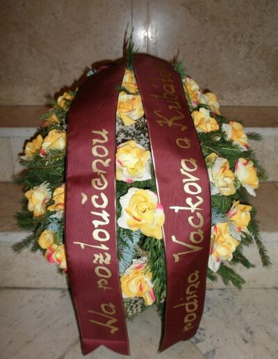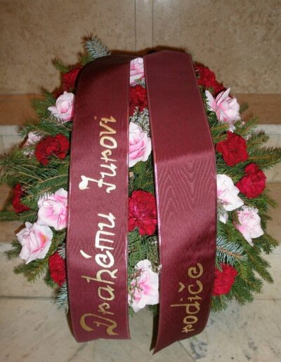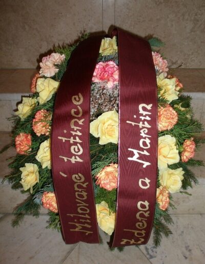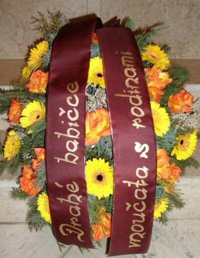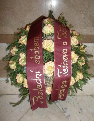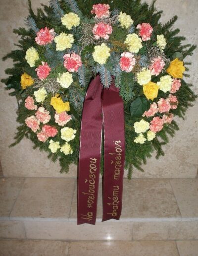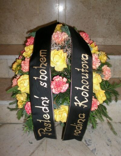 Nabídnout Vám můžeme smuteční kytice i věnce, které vyrobíme, i když jedete na pohřeb, který nezajišťuje naše pohřební služba. Smuteční vazba může být podle přání uvázána buďto z živých květin, kombinací živých a látkových květin nebo z látkových květin.
